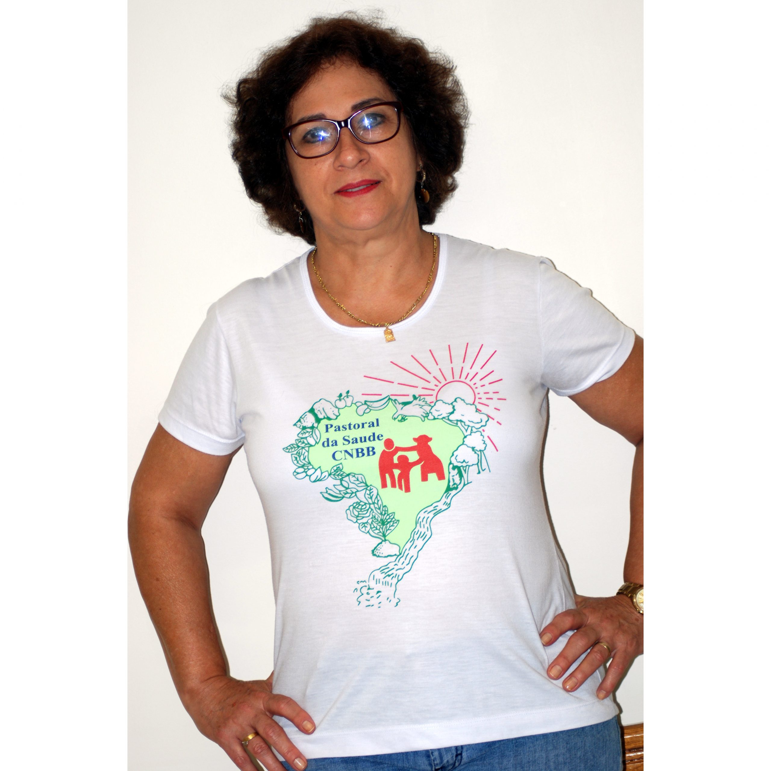 Camiseta Baby Look Branca Pastoral da Saúde Nacional em algodão.